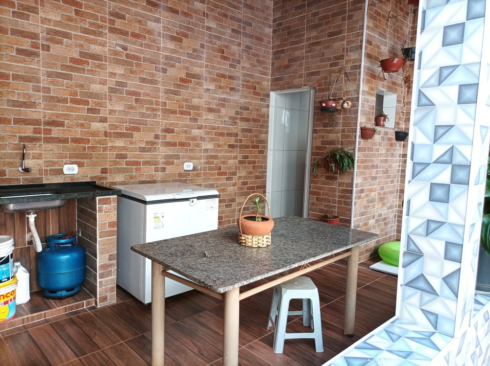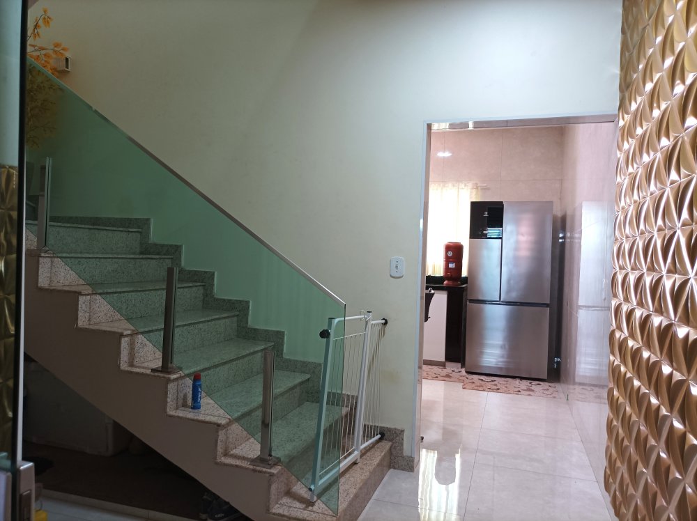 Casa possui porcelanato e sanca